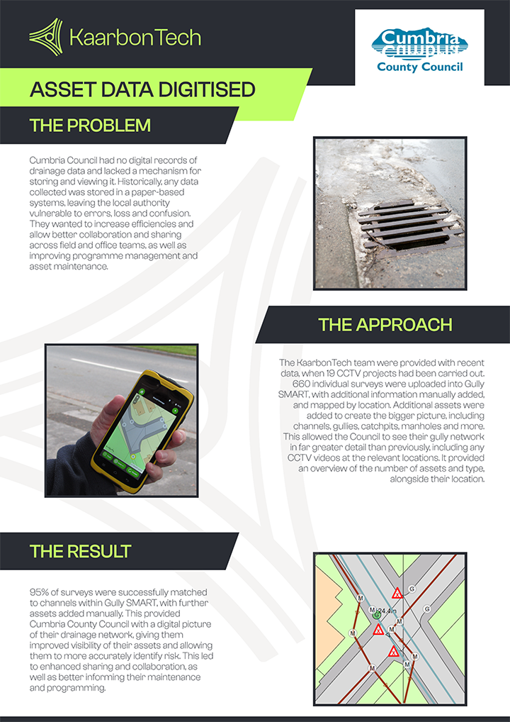 "KaarbonTech improved the resilience of the Cumbria drainage network, and their information enables us to allocate resources more effectively.